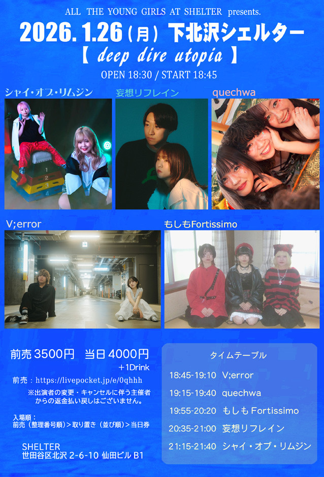 2026年 1/26(月) 下北沢シェルター 【deep dive utopia】